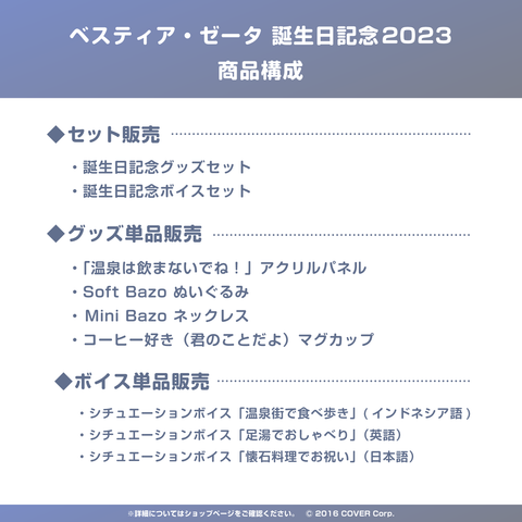 ホロライブプロダクション所属ホロライブインドネシア「ベスティア・ゼータ」の誕生日記念商品です。