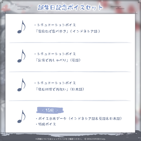 ・特典:ボイス台本データ(インドネシア語&英語&日本語)
