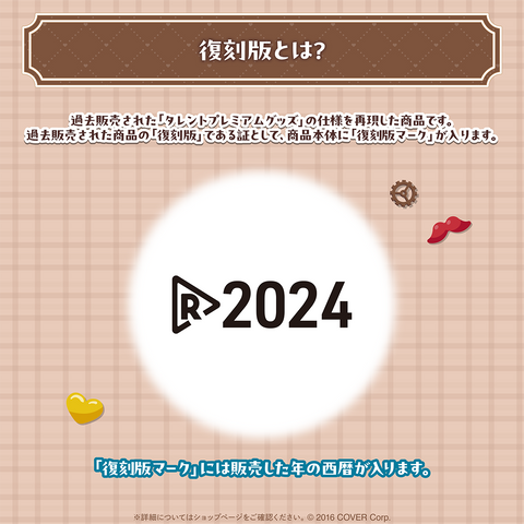 過去販売された「タレントプレミアムグッズ」の仕様を再現した商品です。