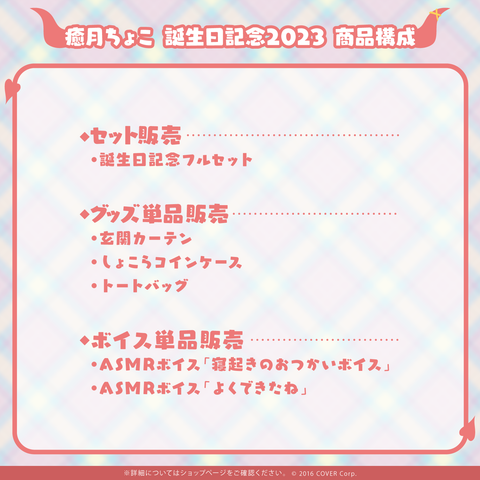 癒月ちょこの誕生日を記念したフルセット商品です。